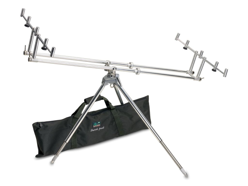 Stojan na pruty je jedna z nedílných součástí kaprařského vybavení. Kaprařský tripod Quick Pod, ale umí překvapit. Přinášíme vám produkt vyrobený z hliníkové slitiny kombinovaný z částí vyrobenými z nerezové oceli . Stojan je stabilní a je vybaven teleskopickými nohami, takže není problém ho pohodlně umístit i do nerovného terénu. Zajímavé je, že jsou vestavěná teleskopická ramena, která vám rázem ze stojanu na 3 pruty, udělají stojan na prutů 5. Celkové váha stojanu Quick pod je 4kg. Součástí výrobku je kvalitní šitý obal. Transportní délka: cca 85 x 20 x 20 cm.- Materiál: hliníková slitina a nerezová ocel