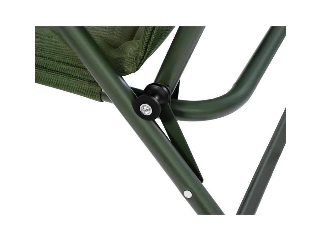 Výškově nastavitelné nohy umožňují přizpůsobit křeslo nerovnému terénu a zaručují stabilitu i v náročných podmínkách. O bezpečné zajištění polohy se starají flexibilní robustní patky, jejichž velká plocha účinně zabraňuje zapadnutí nohou do měkké půdy u vody. Navíc je křeslo vybaveno plastovým klipem, který fixuje jeho polohu během převozu a předchází nechtěnému rozevírání.
