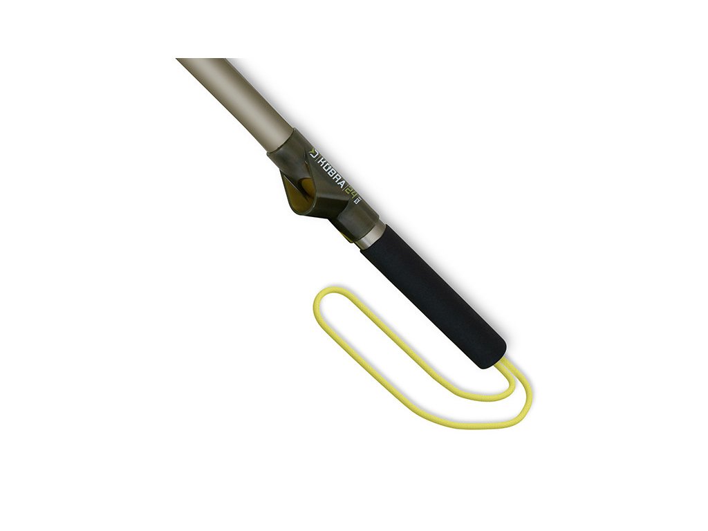 Samotná rukojeť je potažena pogumovaným protiskluzovým materiálem, což usnadňuje manipulaci a zamezuje vysmeknutí z ruky během prudkého švihu. Bonusem je popruh na konci, pomocí kterého je KOBRU možné zavěsit na ruku, či jiné místo v případě, že zrovna nekrmíte.